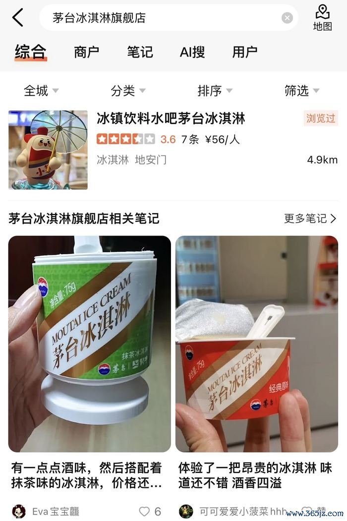 北京无法搜到“茅台冰淇淋旗舰店”,图片:大众点评截图